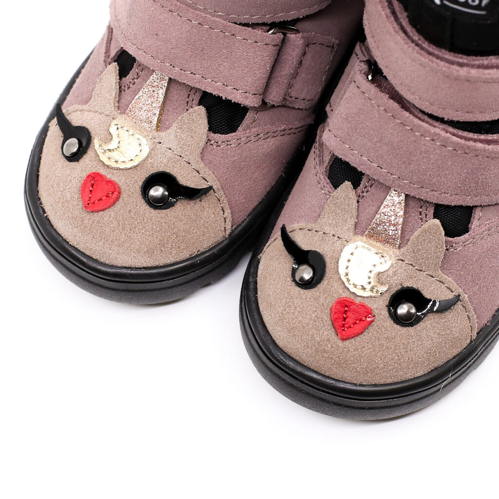 Zimowe trzewiki dziecięce wodoodporne MRUGAŁA Heli BAREFOOT Pony Lawenda ocieplane