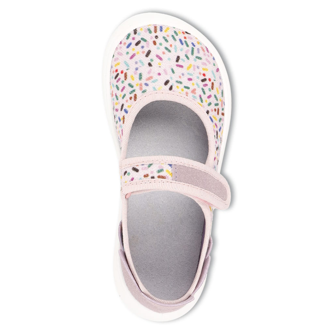 Lekkość, wygoda i dziewczęcy styl – kapcie dziecięce Befado Barefoot w formie balerin to idealne połączenie funkcjonalności i uroczego designu. Biały materiał ozdobiony błyszczącymi srebrnymi nitkami oraz kolorowym konfetti nadaje im wyjątkowy, radosny charakter, który pokochają małe użytkowniczki.