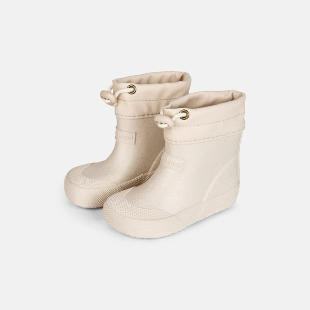 Bundgaard Cover Ivory Sparkle to lekkie i wyjątkowo elastyczne kalosze dziecięce, stworzone z myślą o naturalnym ruchu małej stopy. Wykonane z miękkiej naturalnej gumy, chronią przed wilgocią, jednocześnie pozostając niezwykle komfortowe w noszeniu.