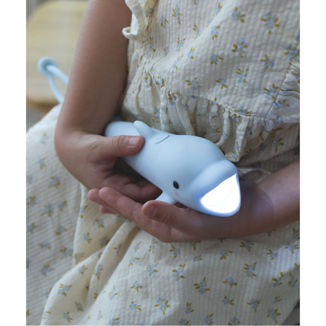 Poznaj uroczą latarkę, która zamienia każdy wieczór w magiczną przygodę! Delfin BUBBLY od Rabbit & Friends to funkcjonalna latarka dla dzieci, pokryta miękkim, przyjemnym w dotyku silikonem. Idealna do czytania bajek, zabawy w teatr cieni czy odkrywania zakamarków pokoju przed snem.