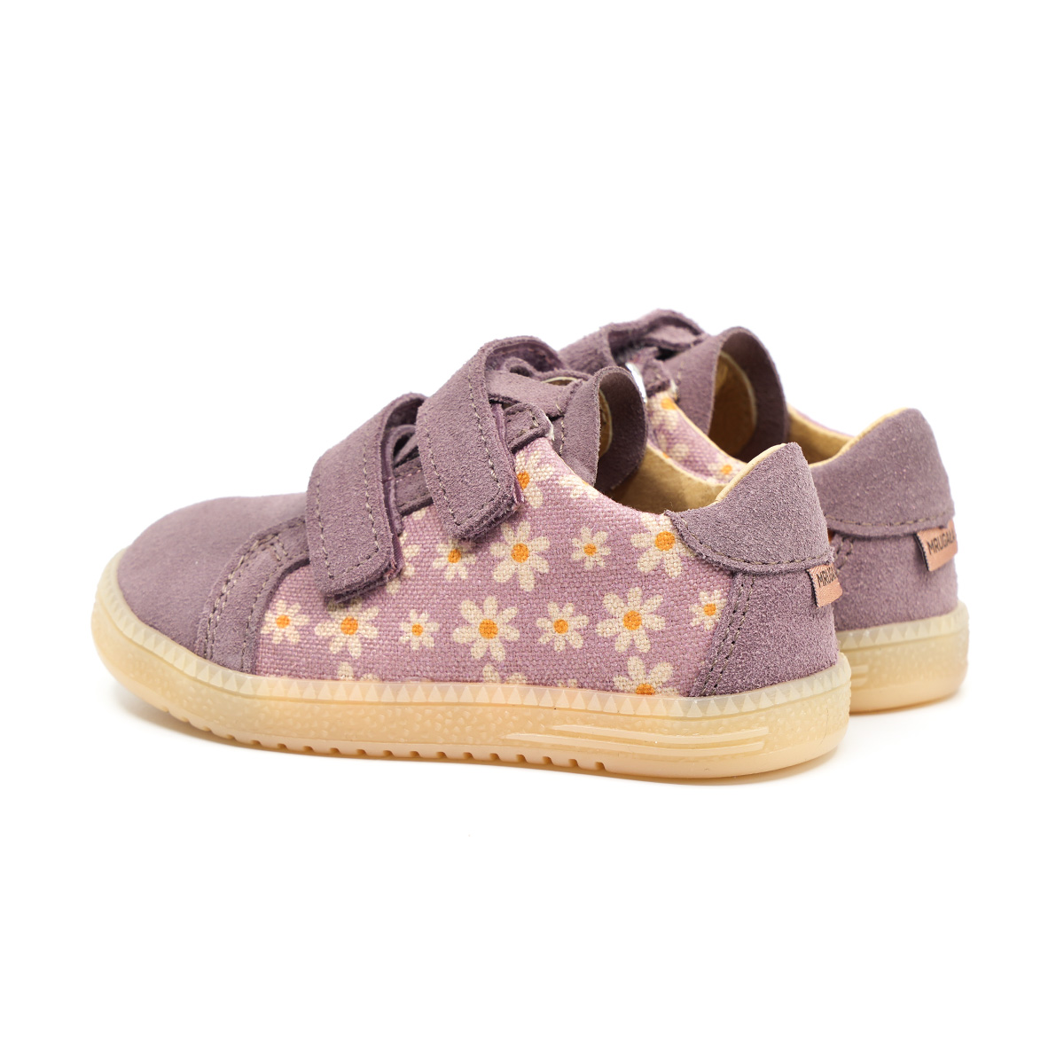 MRUGAŁA półbuty dziecięce LUMI BAREFOOT w kolorze lawenda z printem w stokrotki