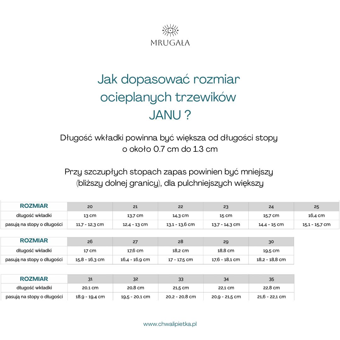 Zerknij do galerii produktu – znajdziesz tam tabelę z rozmiarem, długością wkładki oraz na jaką stopę pasuje dany rozmiar.